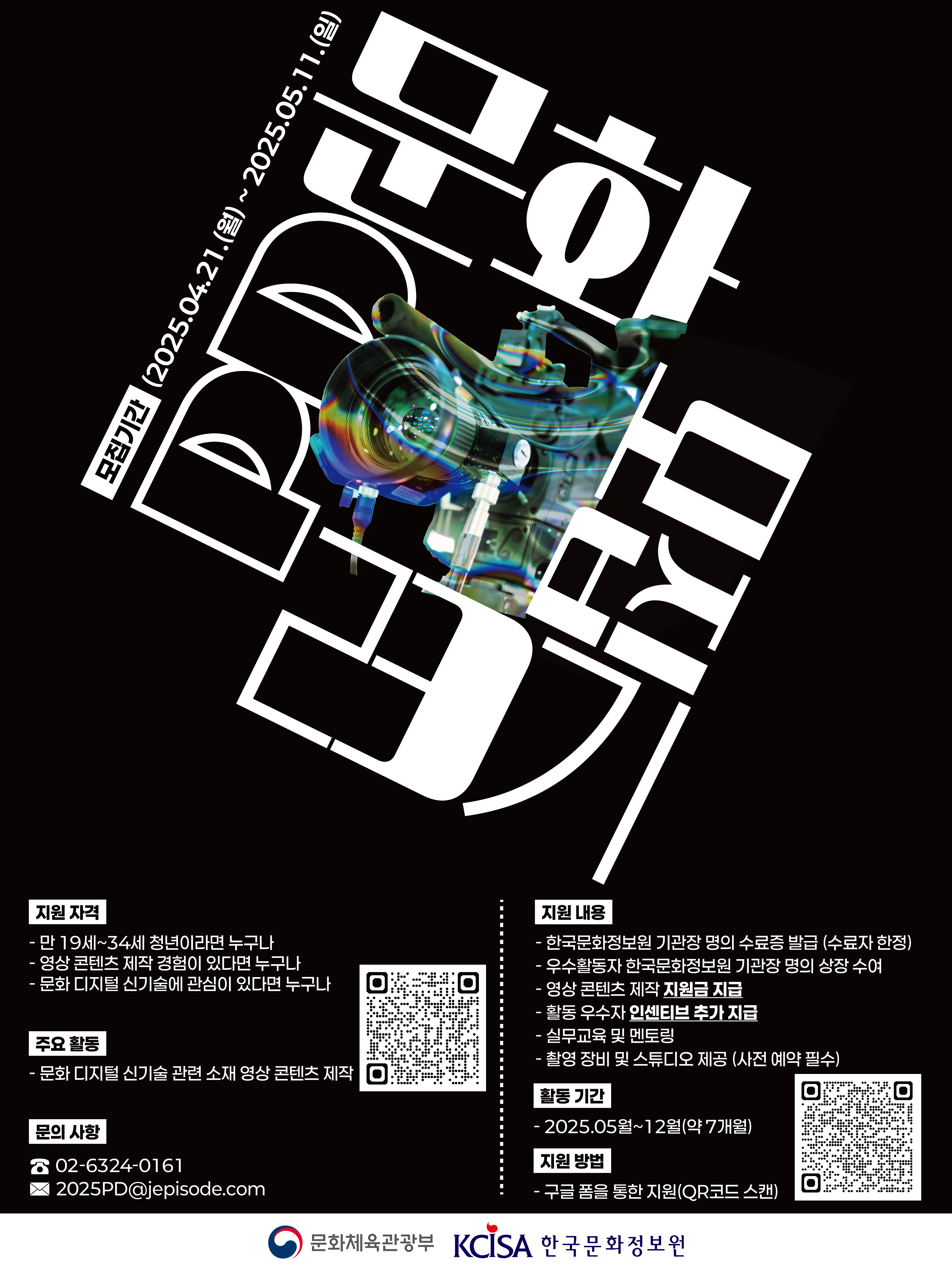 이와 함께 문화PD 활동 지원을 위해 필요한 ▲영상 제작 실무교육과 ▲생성형AI, 언리얼 엔진 등 문화 디지털 신기술 체험·실습 등의 사전교육도 제공한다. 또한, 청년 문화PD의 취·창업 활동 지원을 위한 ▲특강 프로그램과 일자리 정보 교류를 위한 ▲네트워크 강화 프로그램도 제공한다.