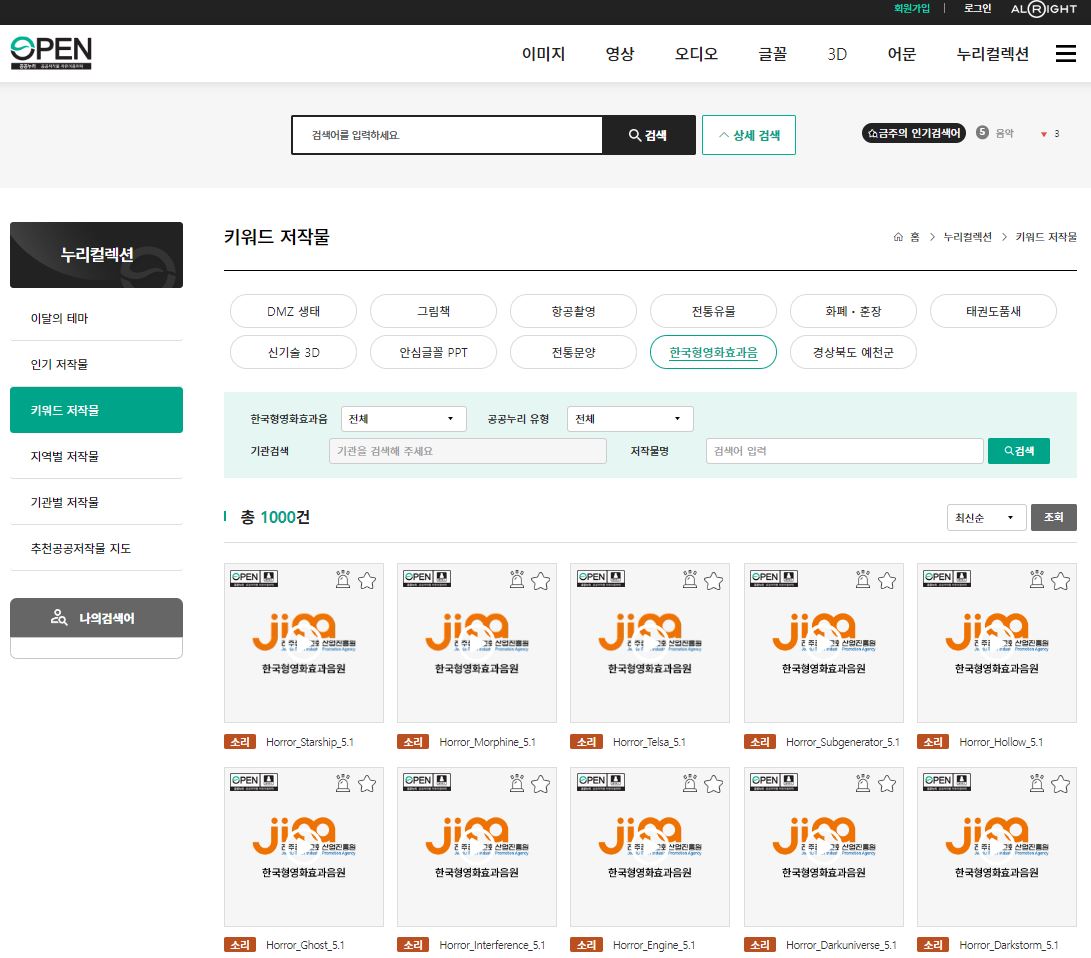 공공누리에서 한국형 효과음원 무료로 다운 받아요.