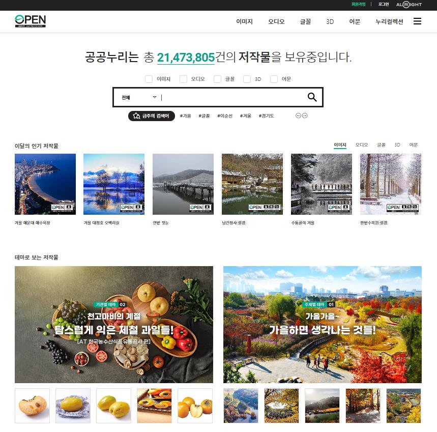 이번 개편은 이용자 만족도 조사와 분류체계 및 서비스 방안 컨설팅을 기반해 국민과 전문가 의견을 바탕으로 진행되었고 △메인화면 개편 △메뉴 구조도 현행화 △통합검색 강화에 중점을 두었다. 메인화면은 시의성있고 트렌드에 맞춘 공공저작물을 선별해 배치하였고, 메뉴 구조도 현행화를 통해 기존의 자료를 이미지, 오디오, 3D, 어문으로 카테고리화하여 사용자의 편의성을 높였으며, 인기 검색어 및 자동완성 기능을 추가해 통합검색 기능을 강화하였다.