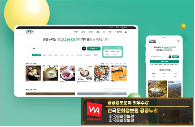 한국문화정보원(이하 문정원, 원장 정운현)은 공공저작물 시스템 ‘공공누리’ 사이트(https://www.kogl.or.kr)가 ‘웹어워드 코리아 2024’에서 공공정보분야 최우수상을 수상했다고 밝혔다.